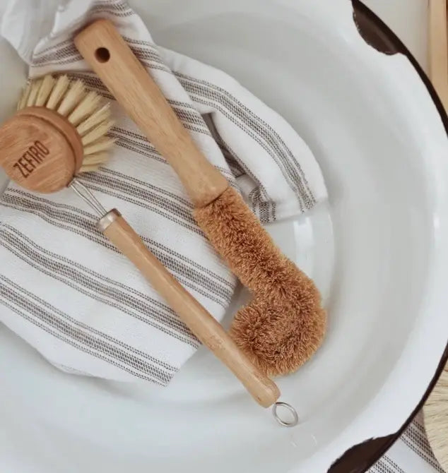 The handle is made from sustainable bamboo and this brush has rough, plant-based coconut fibre bristles. This brush is perfect for getting into coffee mugs, wine glasses, jars and bottles.